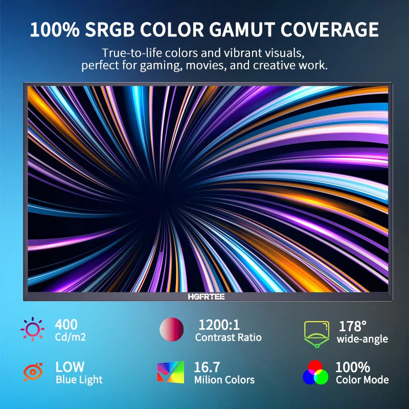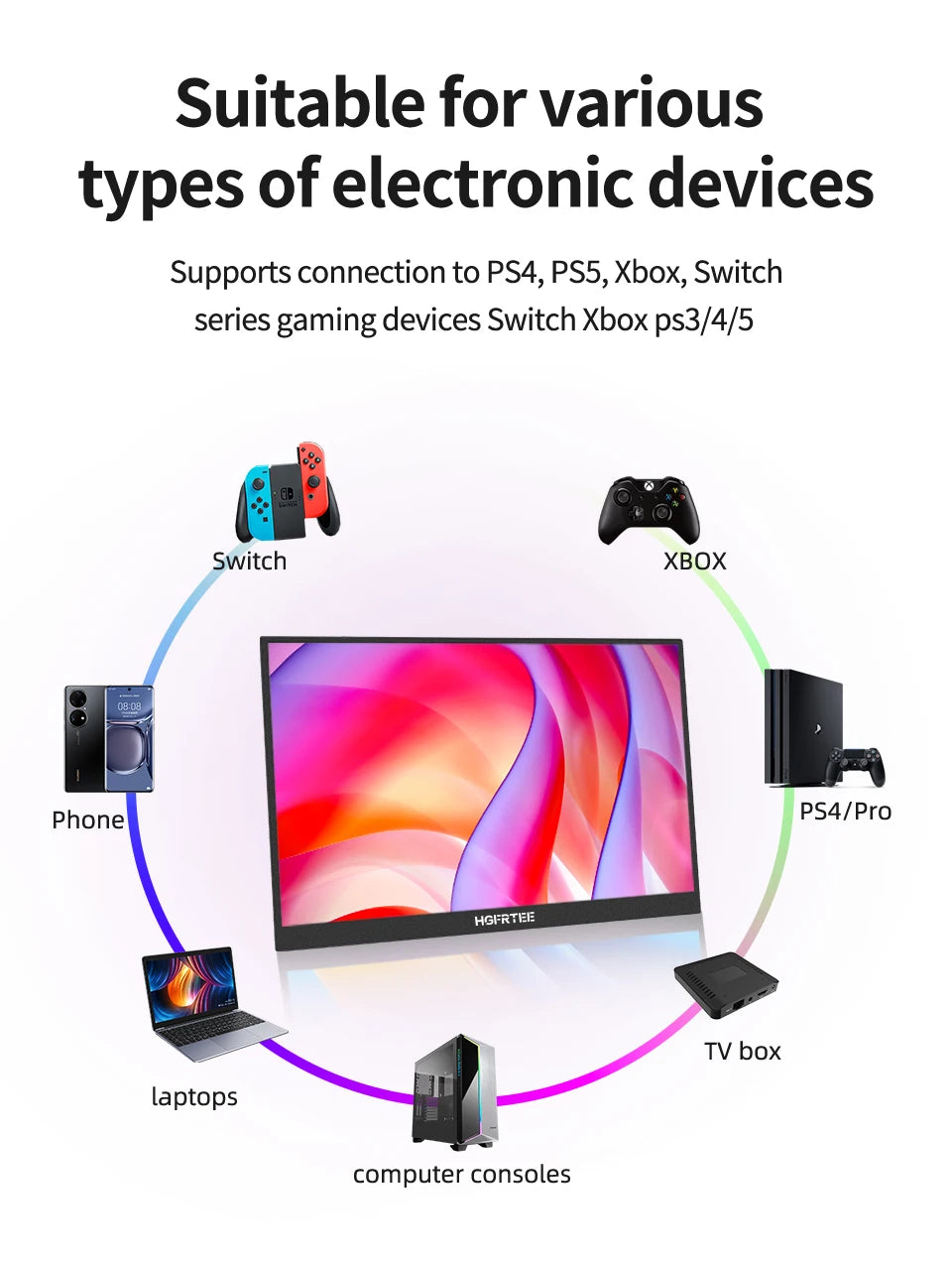 Supports duplicate, extended, and second screen modes for work, gaming, and entertainment. Includes an adjustable stand (0° to 180°) for flexible viewing angles.