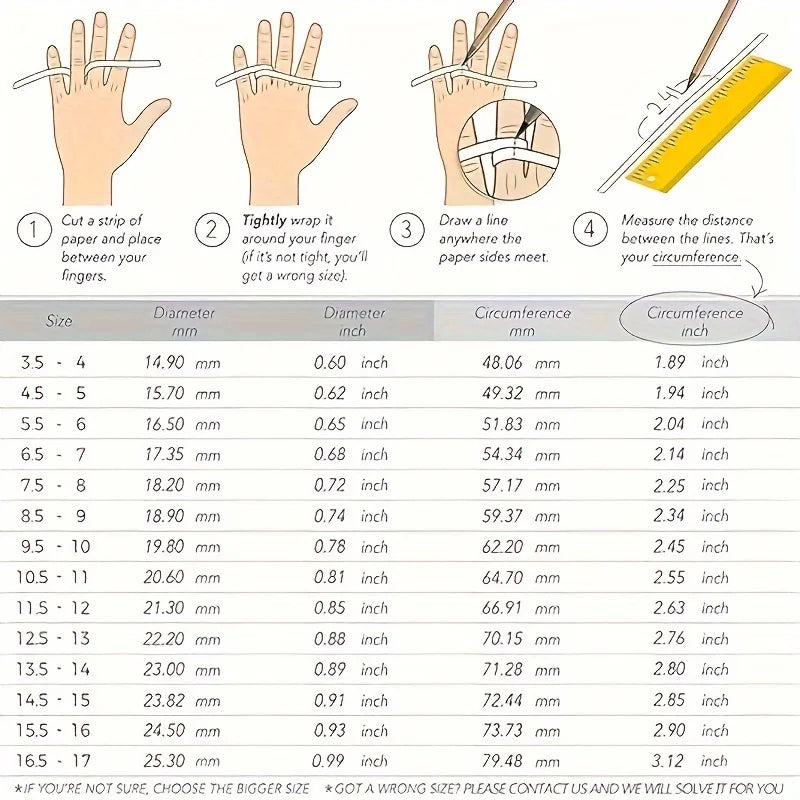 *Ring size (US size): 5/6/7/8/9