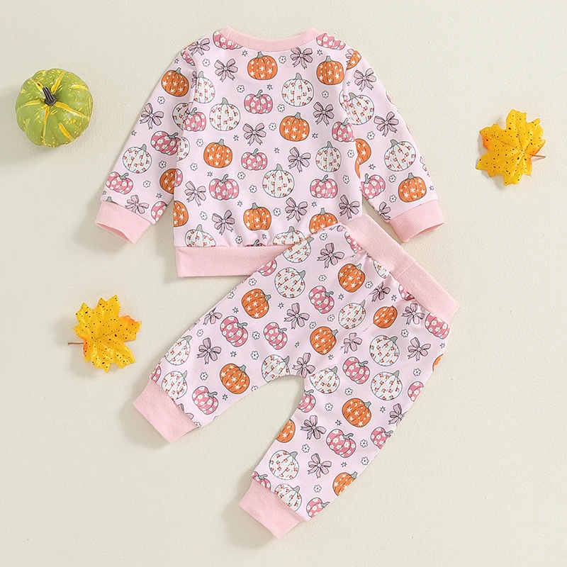 Toddler Girls Halloween Outfits Pumpkin Print Long Sleeve Sweatshirt and Elastic Pants Set Baby Cute 2 Piece ClothesFeatures