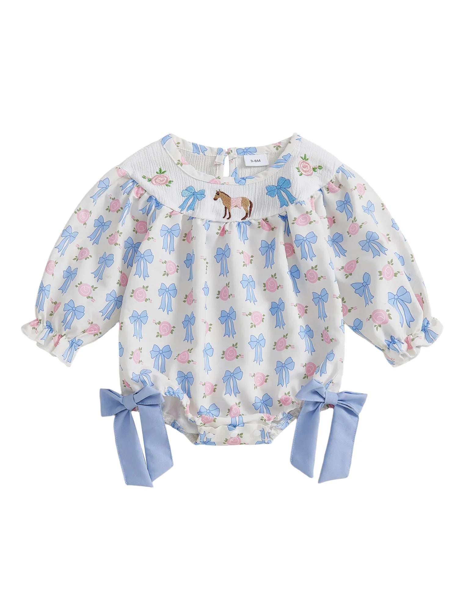 Adorable Toddler Floral Jumpsuit with Ruffle Sleeves and Bow Detail - Sweet Baby Girl Romper for Autumn Outfits