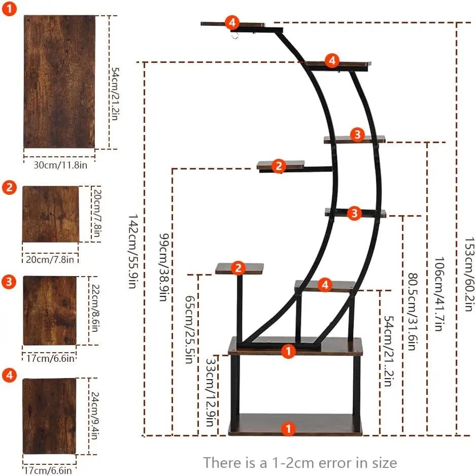 Black Plant Stand with Grow Light for Indoor Plants 9 Tiered Metal Plant Shelf 60" Black Holder Display Rack for Home Balcony