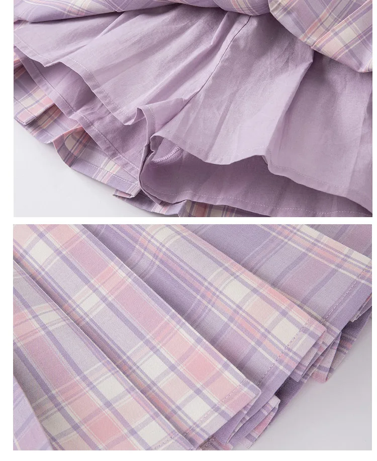 Dave Bella Girls Short Sleeve Blouse Skirt Sets Plaided Sunmmer Clothes Two-Pieces Shirt Skirt Suit Children Clothes DBK2221925