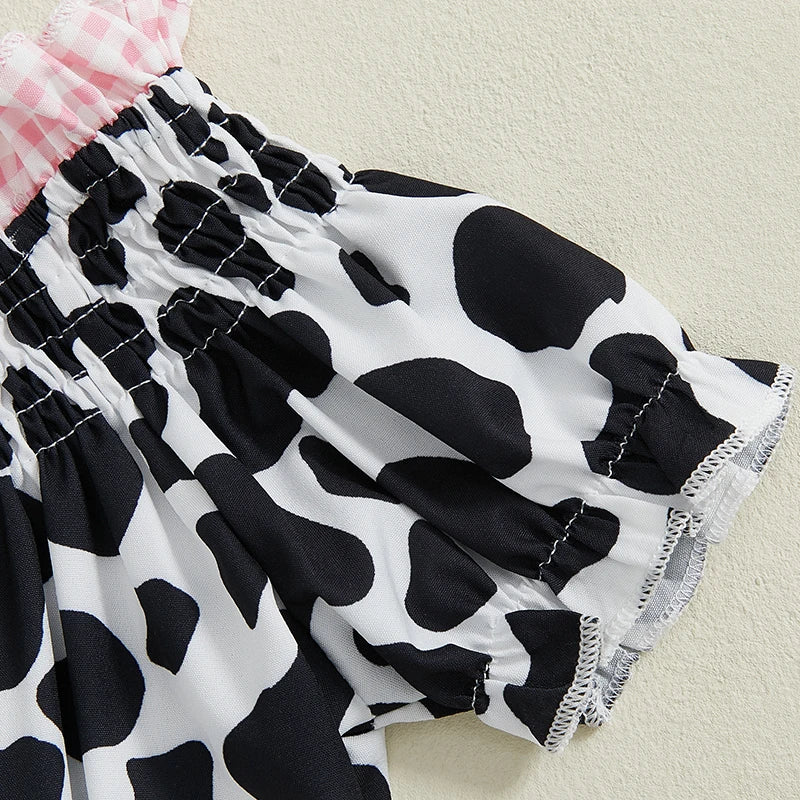 Cute outfit for toddler girls; Baby girl summer t-shirt with cow print, short sleeves, front button, round neck design; Baby girl denim shorts with belt, ripped, cute bow, elastic waist design, exquisite details make your little one cute and charming