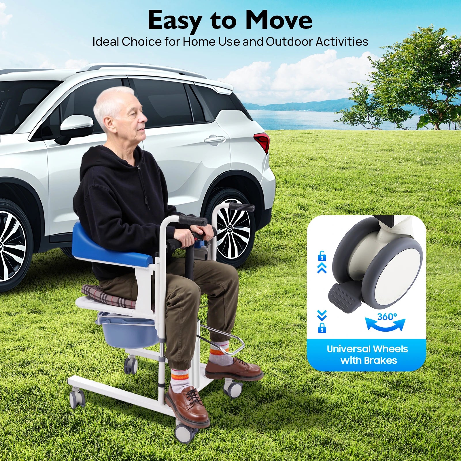 Hydraulic Patient Lifting Wheelchair 198.4lbs Load Portable Potty Transport Wheelchair 16.5-24in Adjustable Height 180° Backrest