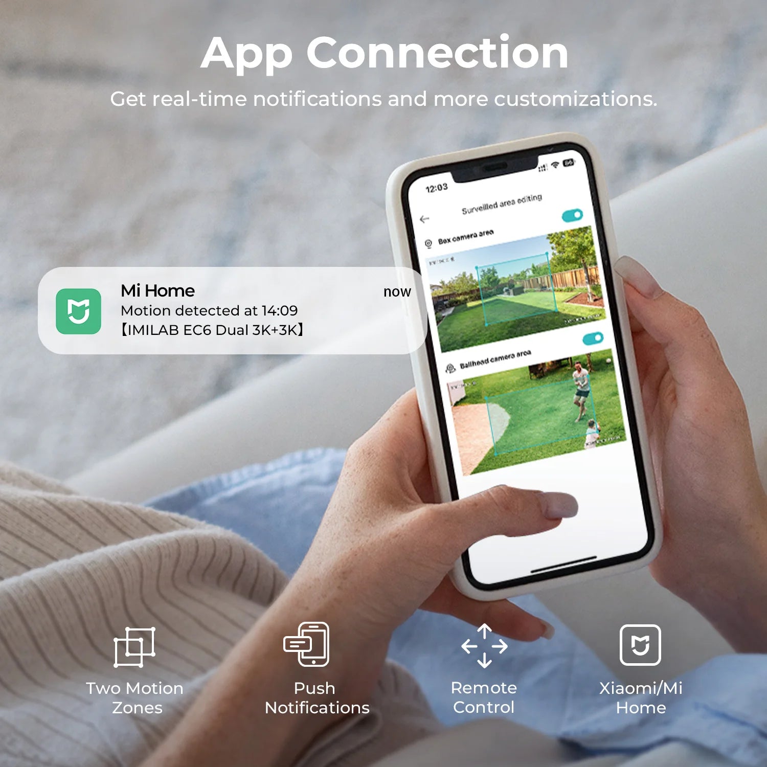 【Instant Notifications, Always Connected】 The app allows for more customization and remote control. Set up to two motion zones to let the outdoor camera keep a close eye on and react according to the object. Receive immediate push notifications from the app in any situation