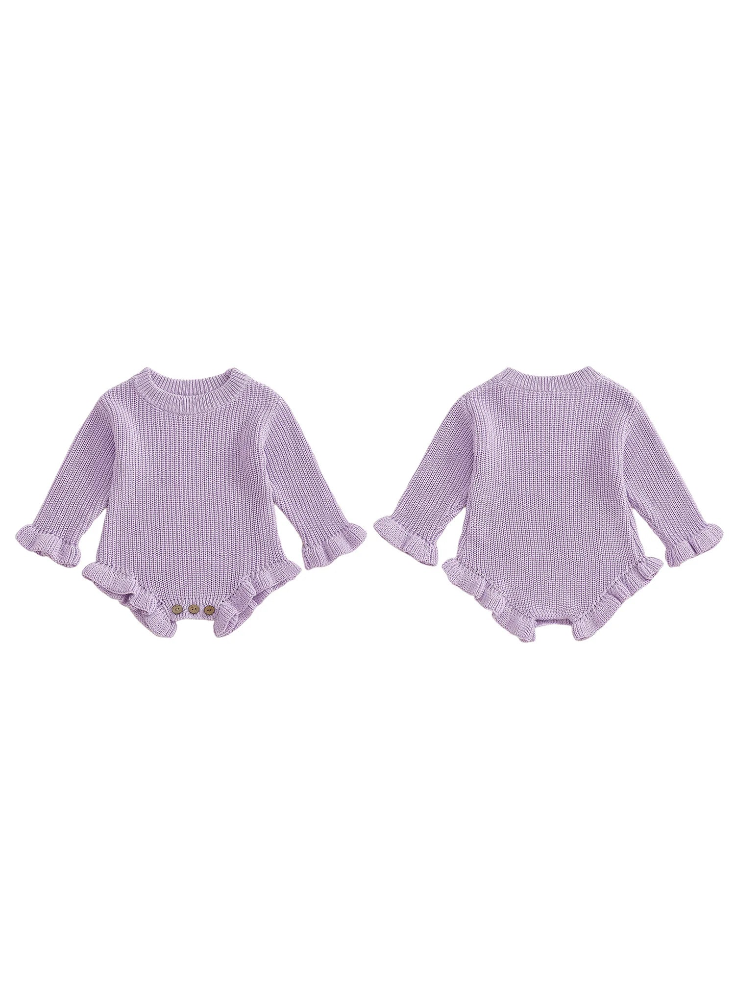 Baby Fall Knit Romper Solid Color Long Sleeve Round Neck Ruffled Sweater JumpsuitSize(cm)