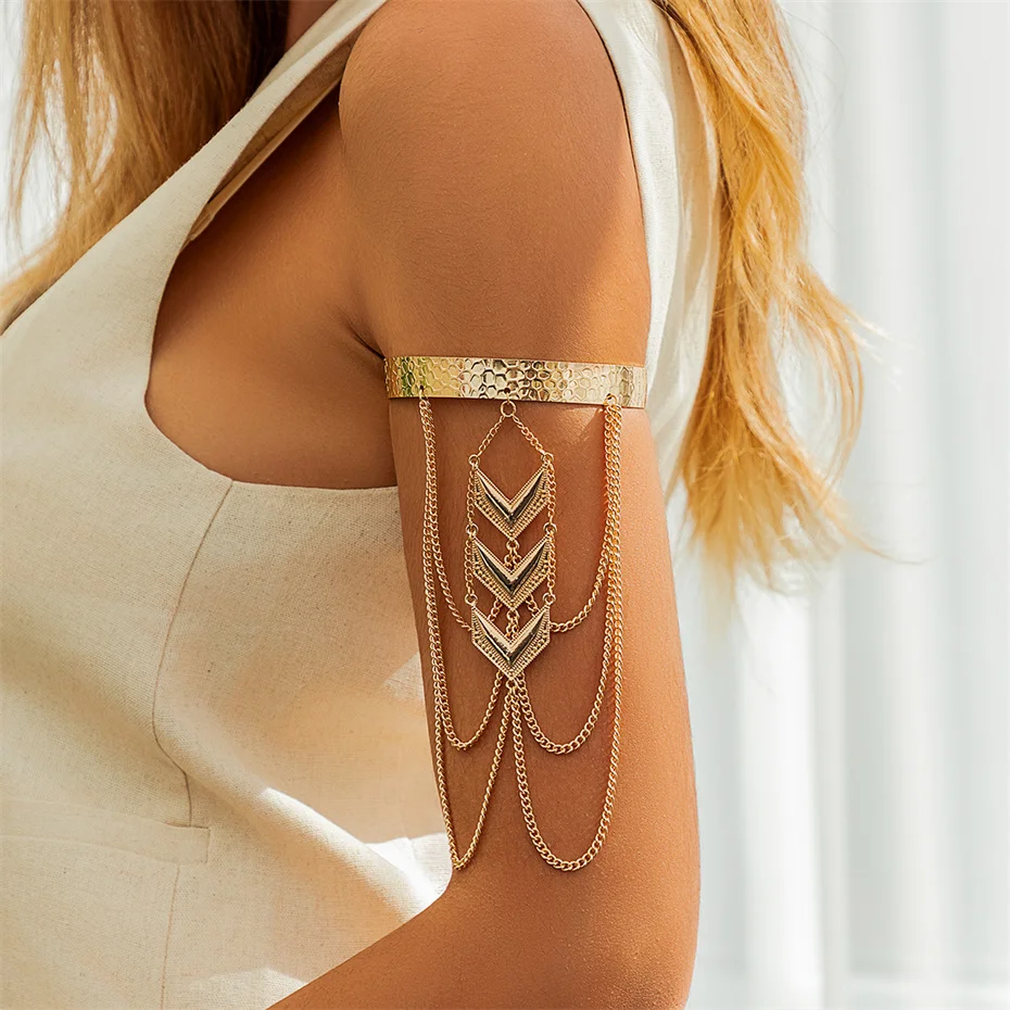 Ingemark Vintage Punk Tassel Link Open Upper Arm Bracelet for Women Goth V Shape Pendant Adjustable Bangles Couple Jewelry Gift