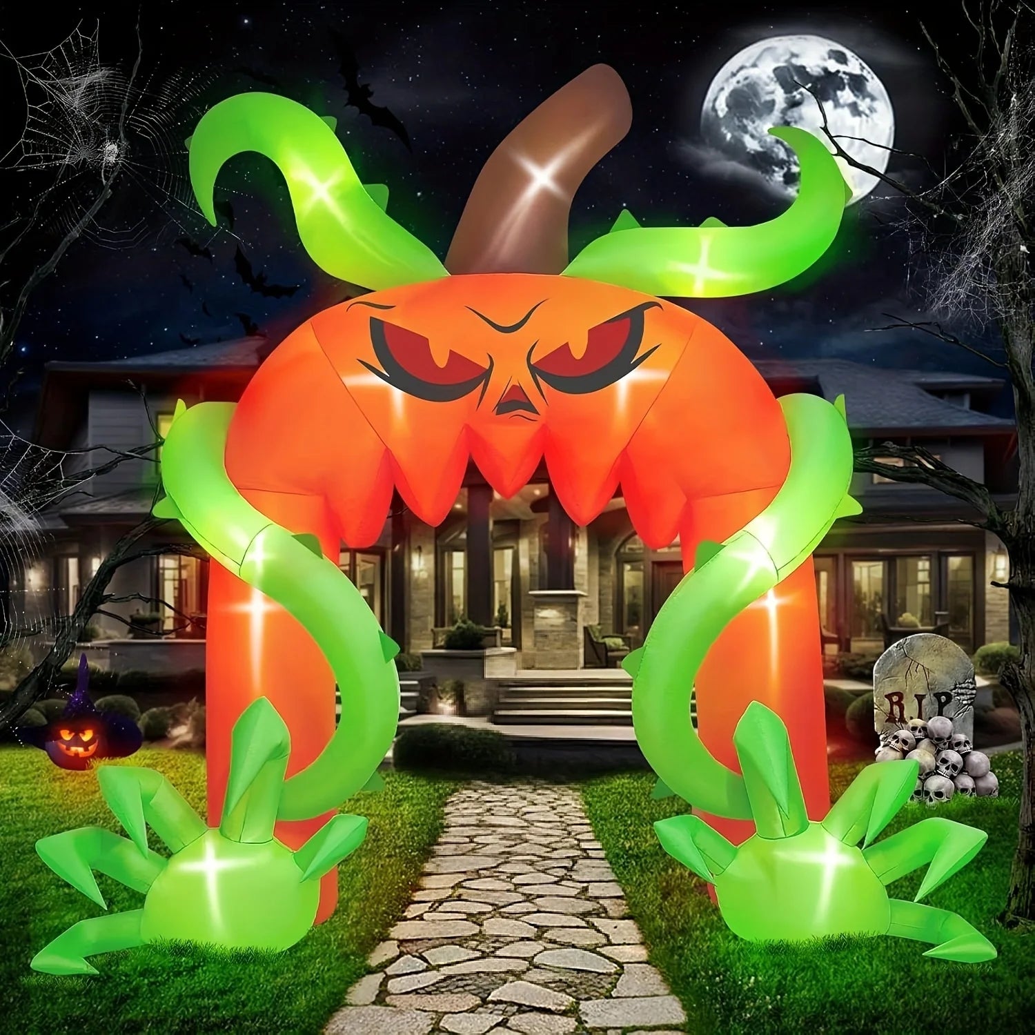 Kalolary 12FT Halloween Arch Balloon, Giant Pumpkin Arch Balloon with LED Lights, Scary Halloween Outdoor Balloon Decoration,
