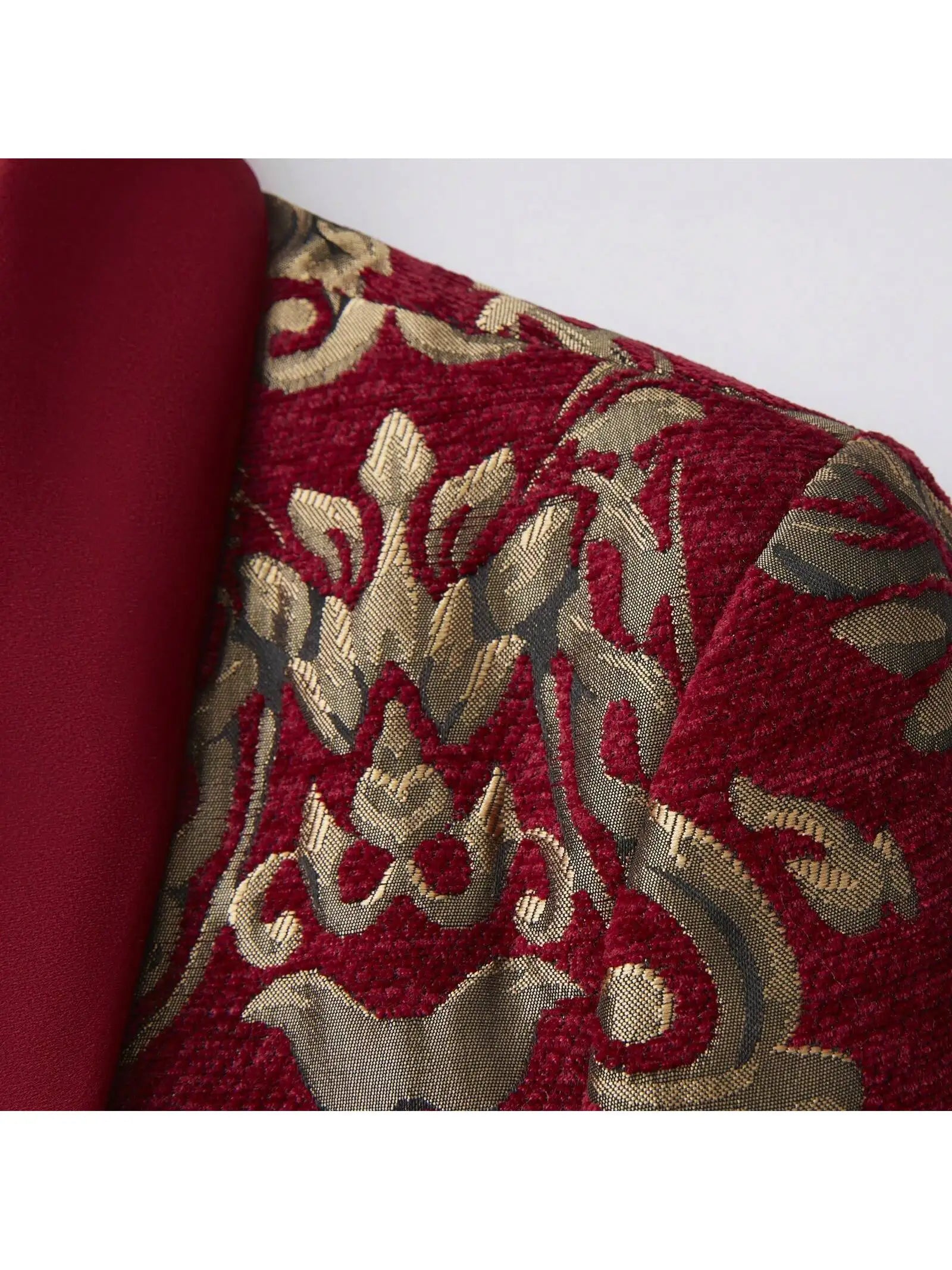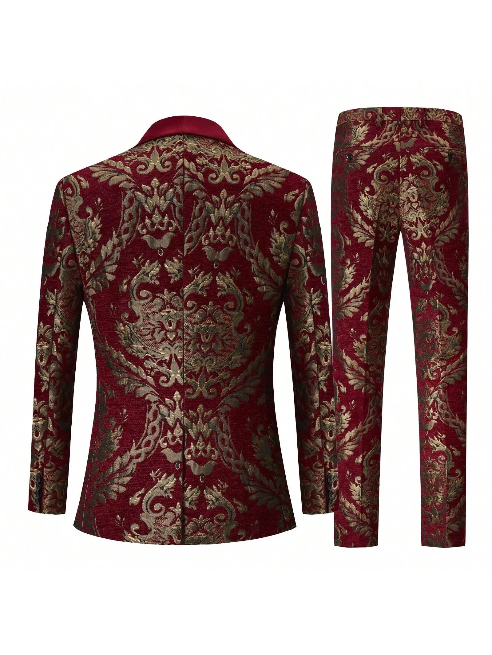 Mens Suit Jacquard Silm Fit 2-Piece Shawl Lapel Tuxedo Wedding Party Prom Suit Set