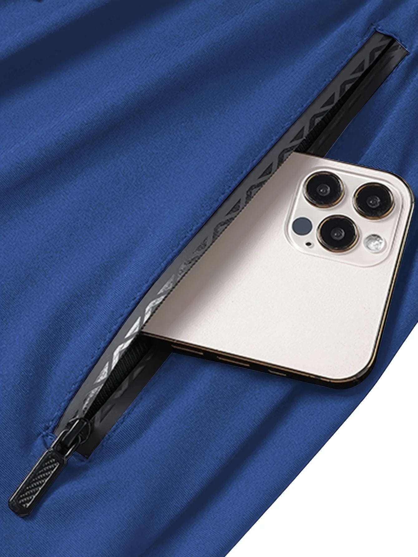 Men's Waist Drawstring Quick-drying High Elasticity Solid Color Sports Training Outdoor Long Pants With Zipper Pockets