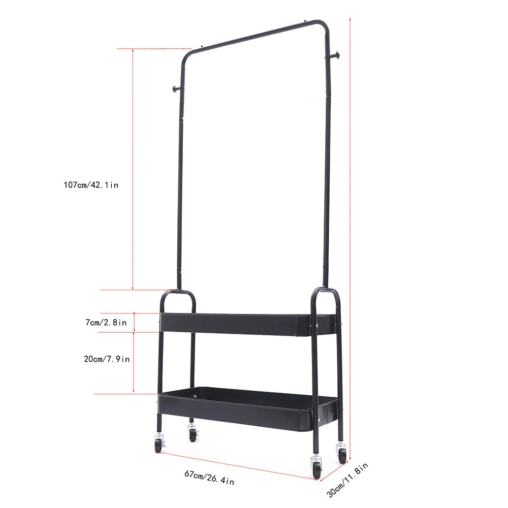 Mobile Clothing Storage Rack Clothing Hanging Rack with 2 Tiers Garment Storage Organizer Stand with Wheels, Black/White/Pink
