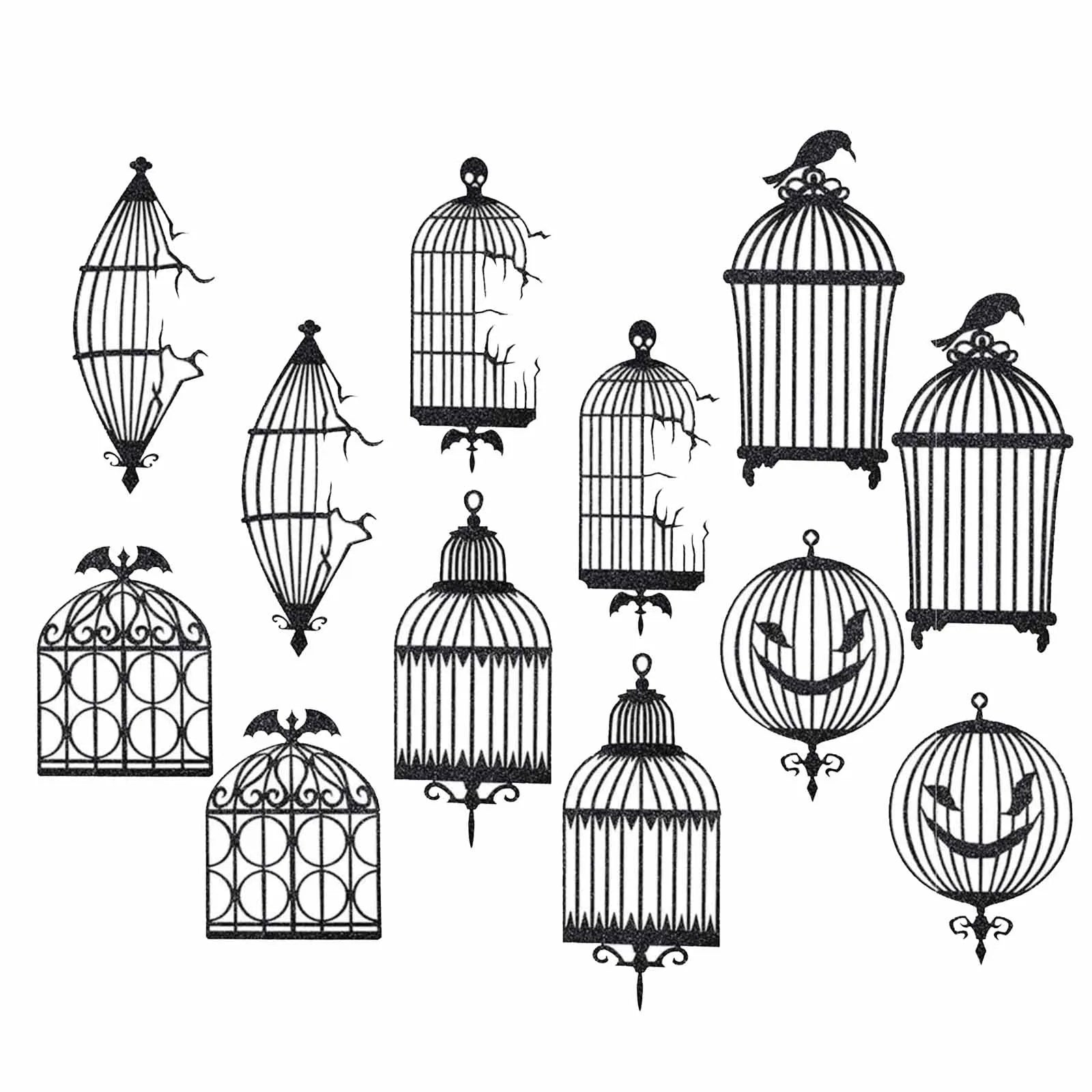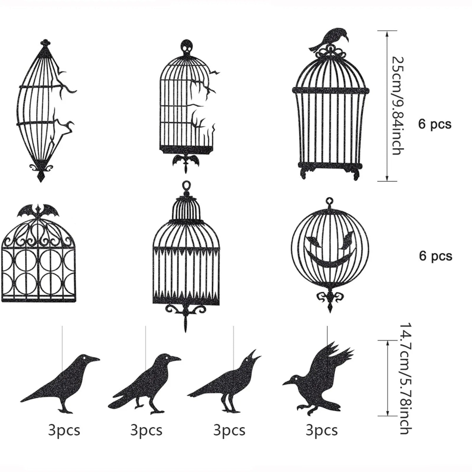 Party Decoration Glitter Black Crow Bird Cage Hanging Decoration Window Pendant