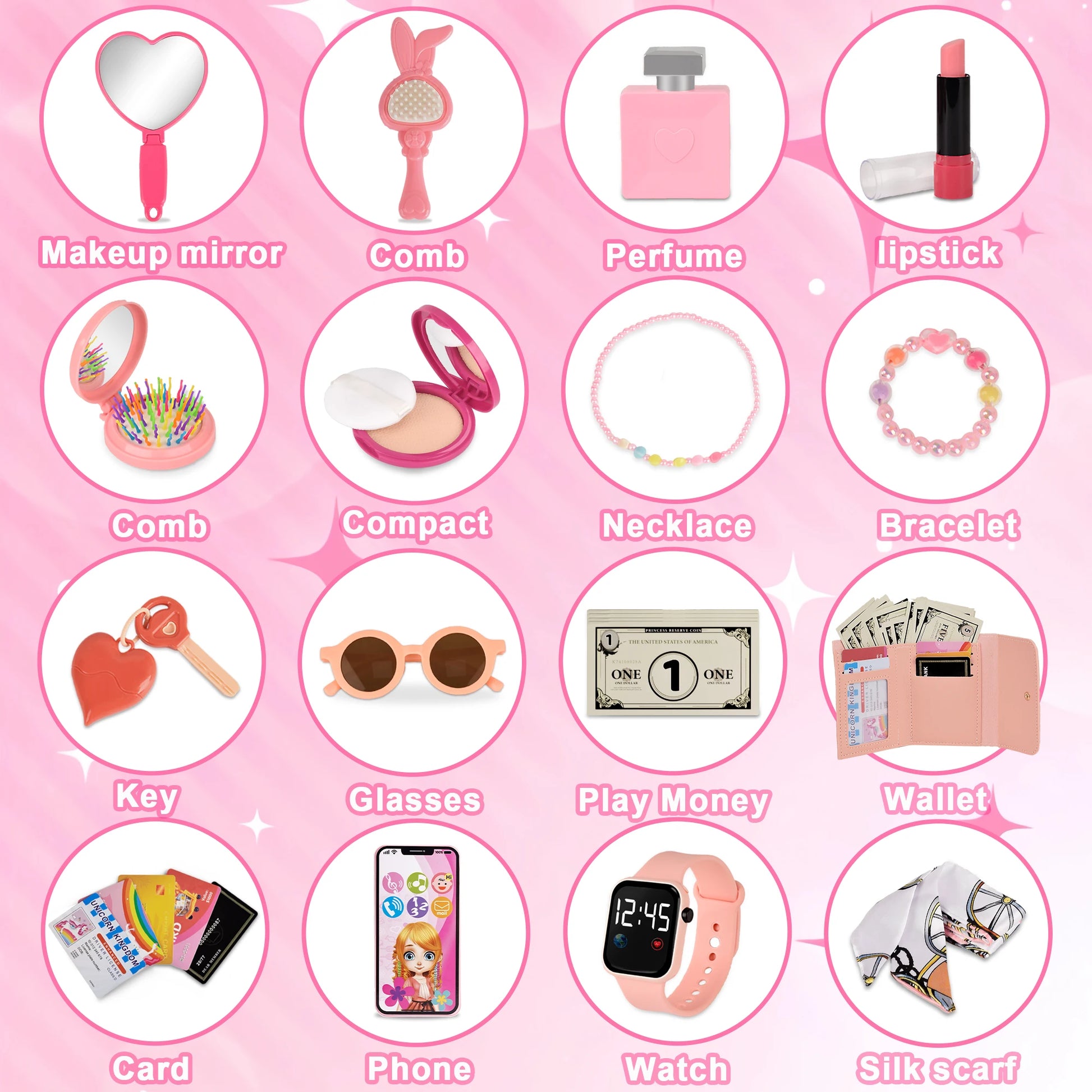 Princess Playset for Girls: Stylish Makeup Kit with Handbag, Phone, Wallet & Fake Cosmetics – Perfect Gift for Kids Aged 3+
