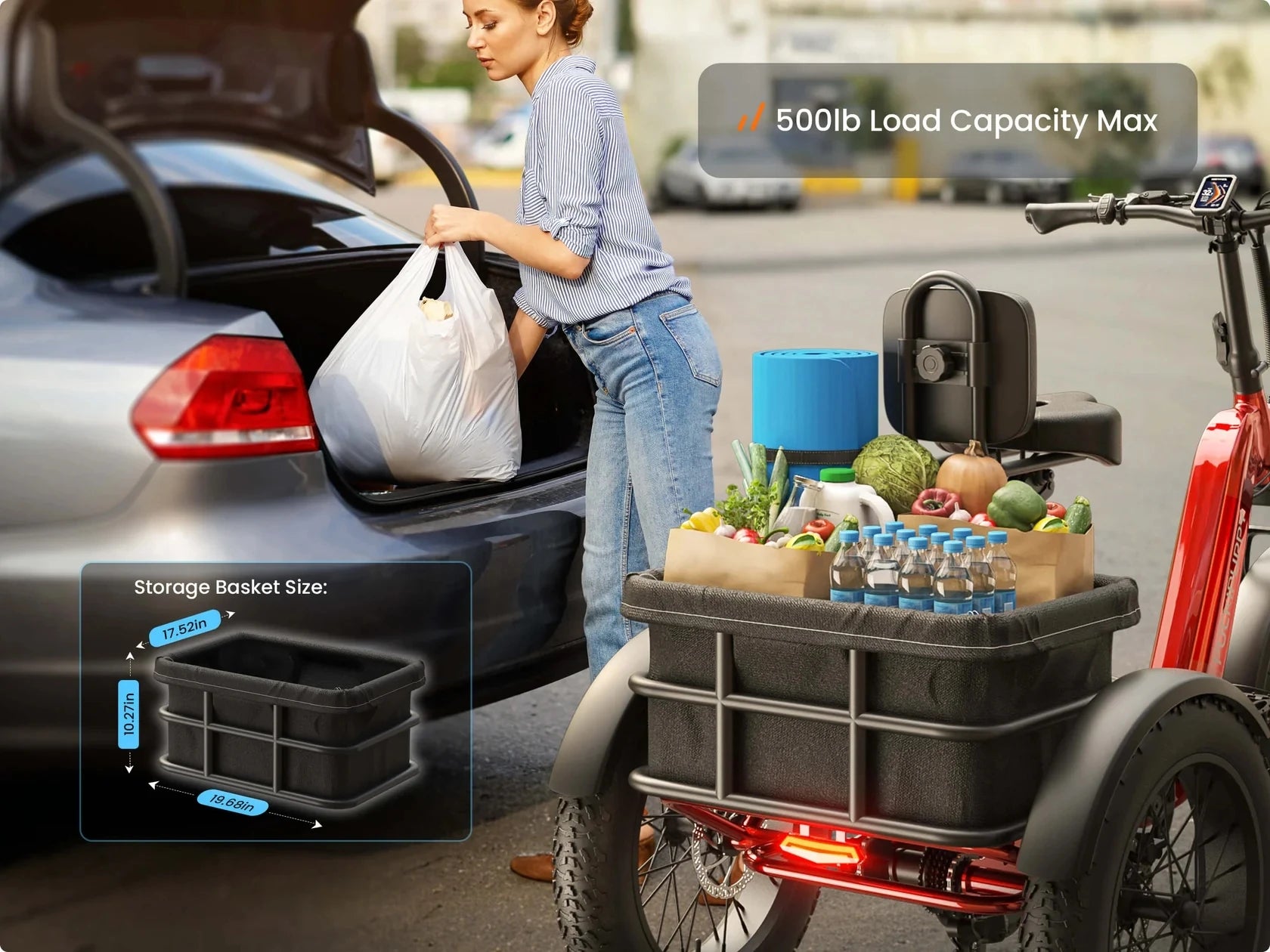 PUCKIPUPPY Husky Electric Trike for Adult 960W Peak Motor 60 Miles Range Pickup Class Tricycle 500 Lbs Load Electric Trike