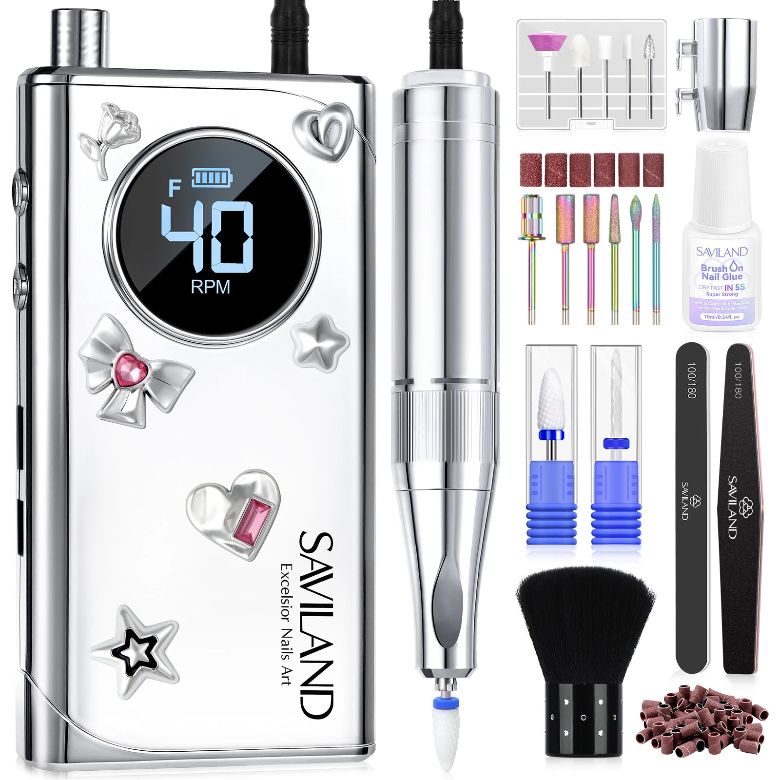 SAVILAND Professional Rechargeable 40000RPM Electric Nail Drill Machine with 12 Drill Bits Nail File for Acrylic Nails Removing