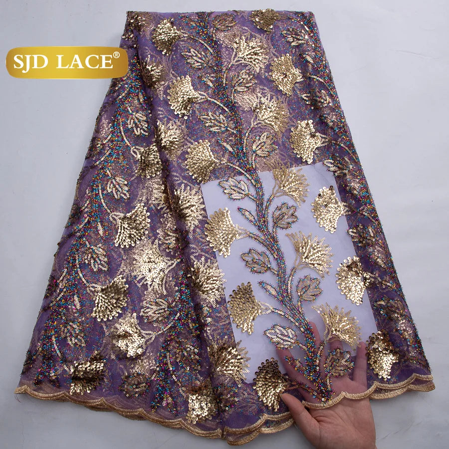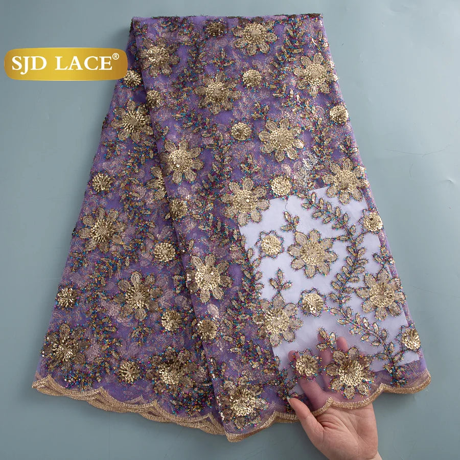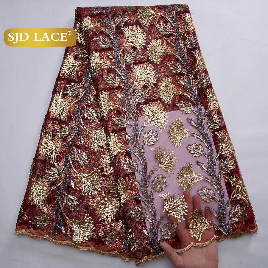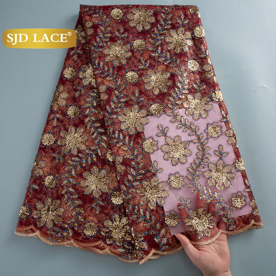SJD LACE African Green Sequins Mesh Woman Lace Fabric High Quality 2025 Nigerian French Net Lace for Sewing Wedding Dresses 3735
