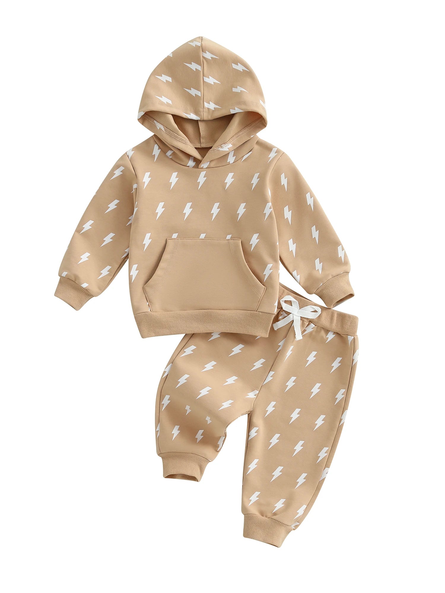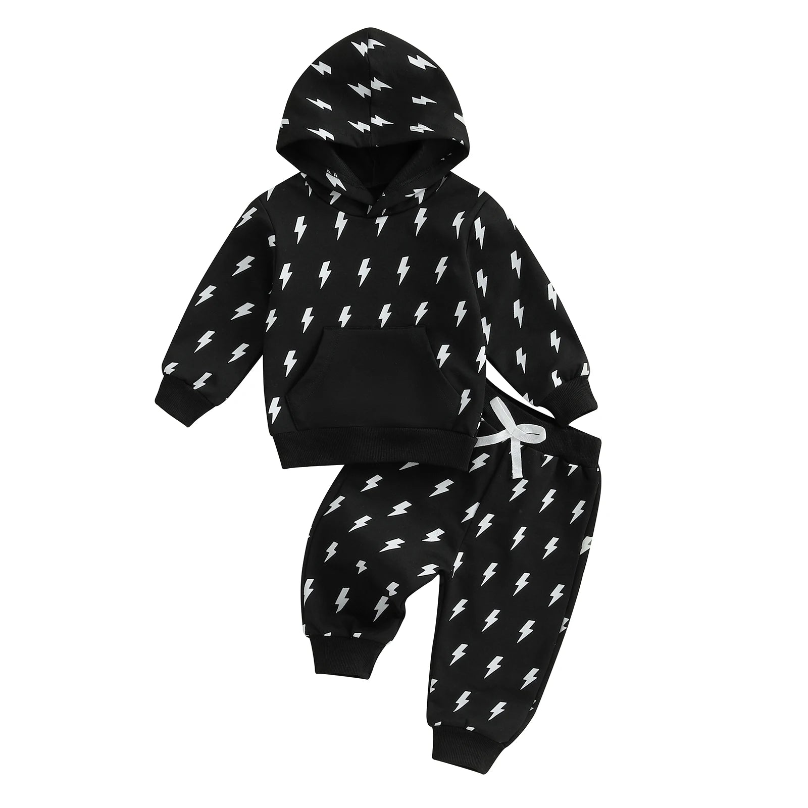 Baby Boy Fall Outfit Flash Print Long Sleeve Hoodie Sweatshirt and Elastic Pants 2 Piece Clothes for ToddlerFeatures