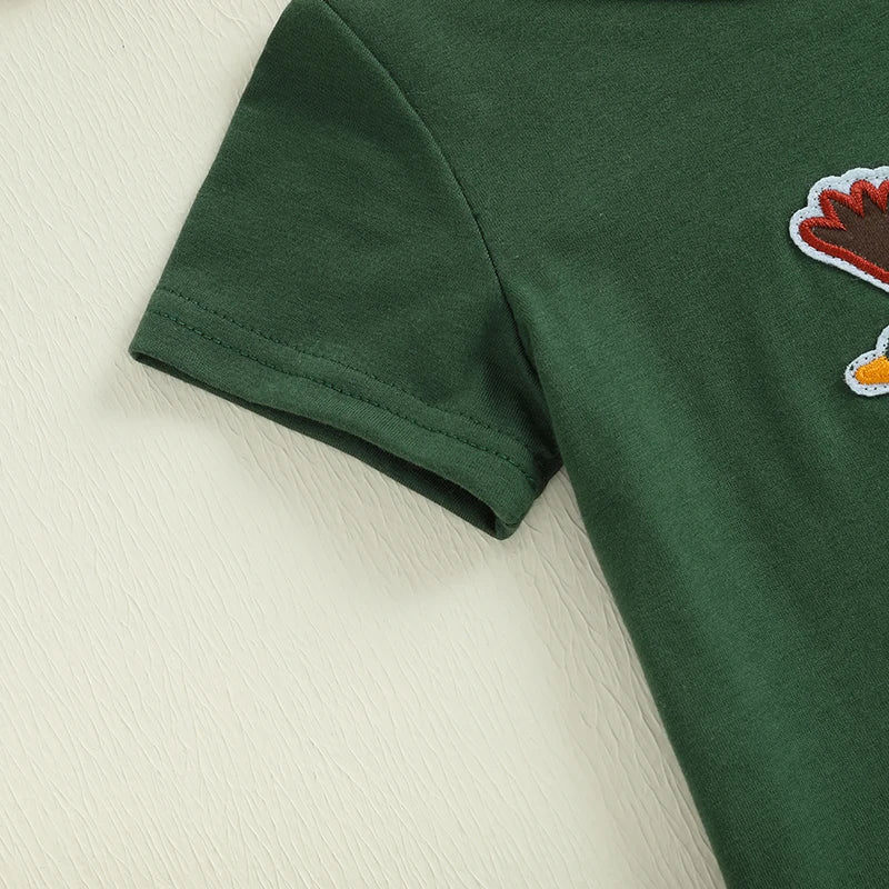 Baby Boys Summer Outfits Duck Letter Embroidery Short Sleeves T-Shirt and Elastic Plaid Print Shorts SetFeatures