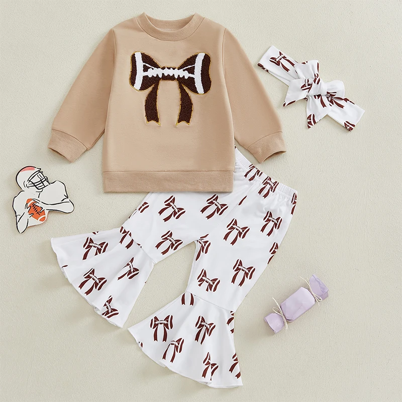 Baby Girls Fall Outfit, Bowknot Long Sleeve Sweatshirt with Flare Pants HeadbandThis pants set is a good combination of comfy and style, both suitable for spring or fall.